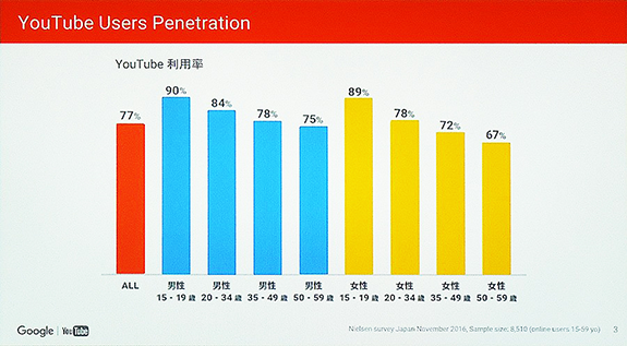 画像引用:YouTubeの日本の利用率は77%とGoogleが発表(2016年調査結果)/ Web担当者Forum